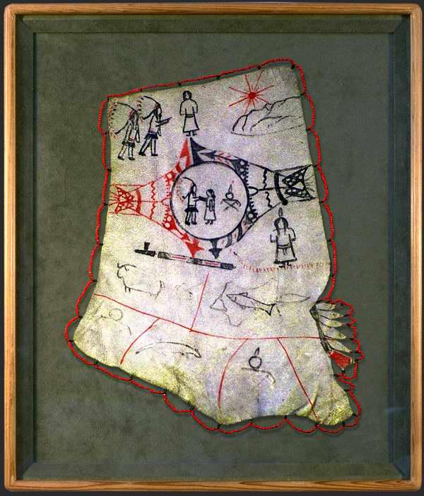 Indian names and a certificate on buckskin telling the